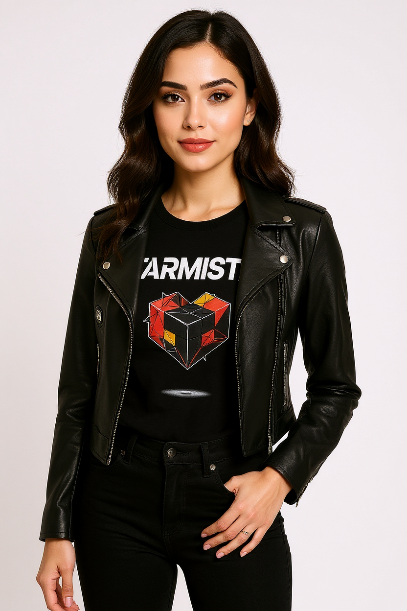 Playera Starmistica con logotipo corazón, en colores negro, azul marino y gris